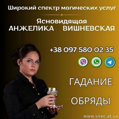 Спадкова провісниця, ясновидиця в 10 поколінні, з давнього роду Дошкещі Анжеліка Вишневська допоможе у вирішенні важких життєвих ситуаціях!!!