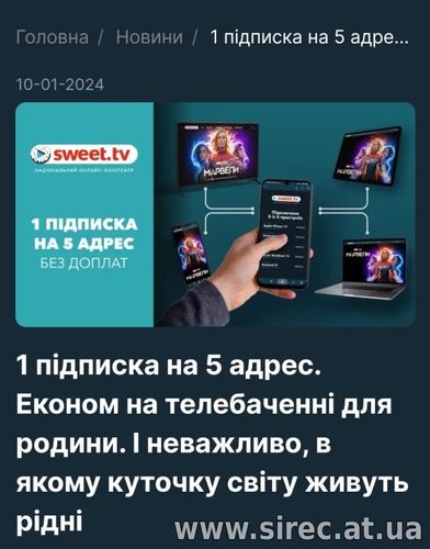 Sweet_TV дає круту можливість родинам економити на телебаченні .Адже 1 підписку можна підключити одразу на 5 різних адресів .